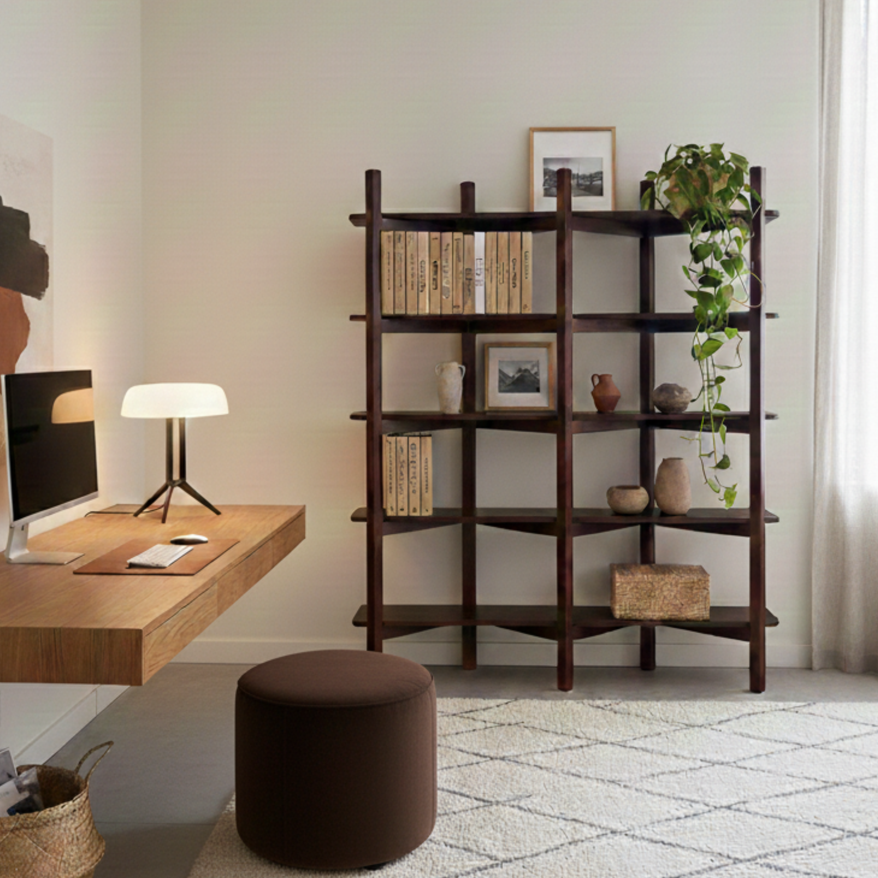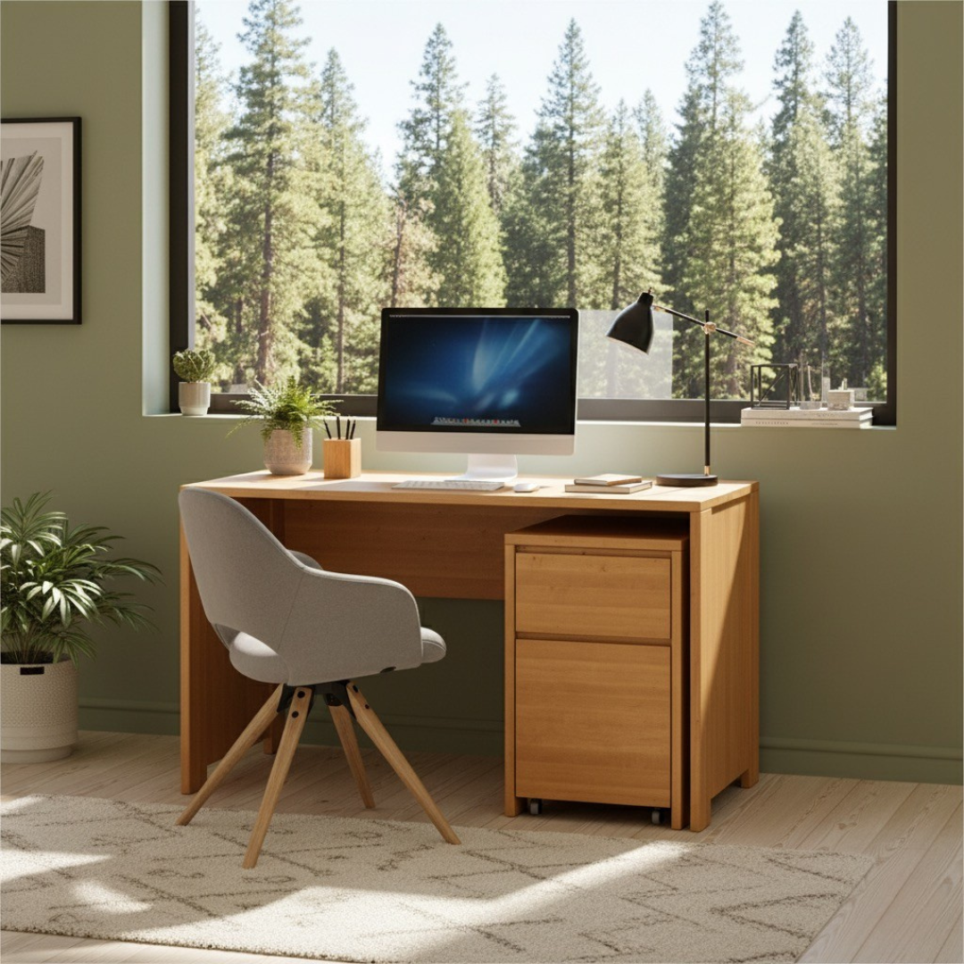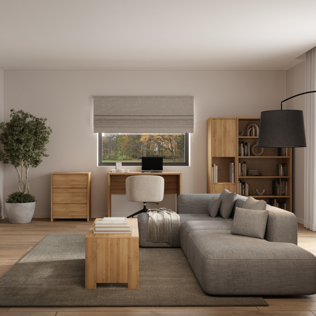 Inwestując w drewniane biurko i regał, tworzysz przestrzeń, która:- dopasowuje się do zmieniających się potrzeb